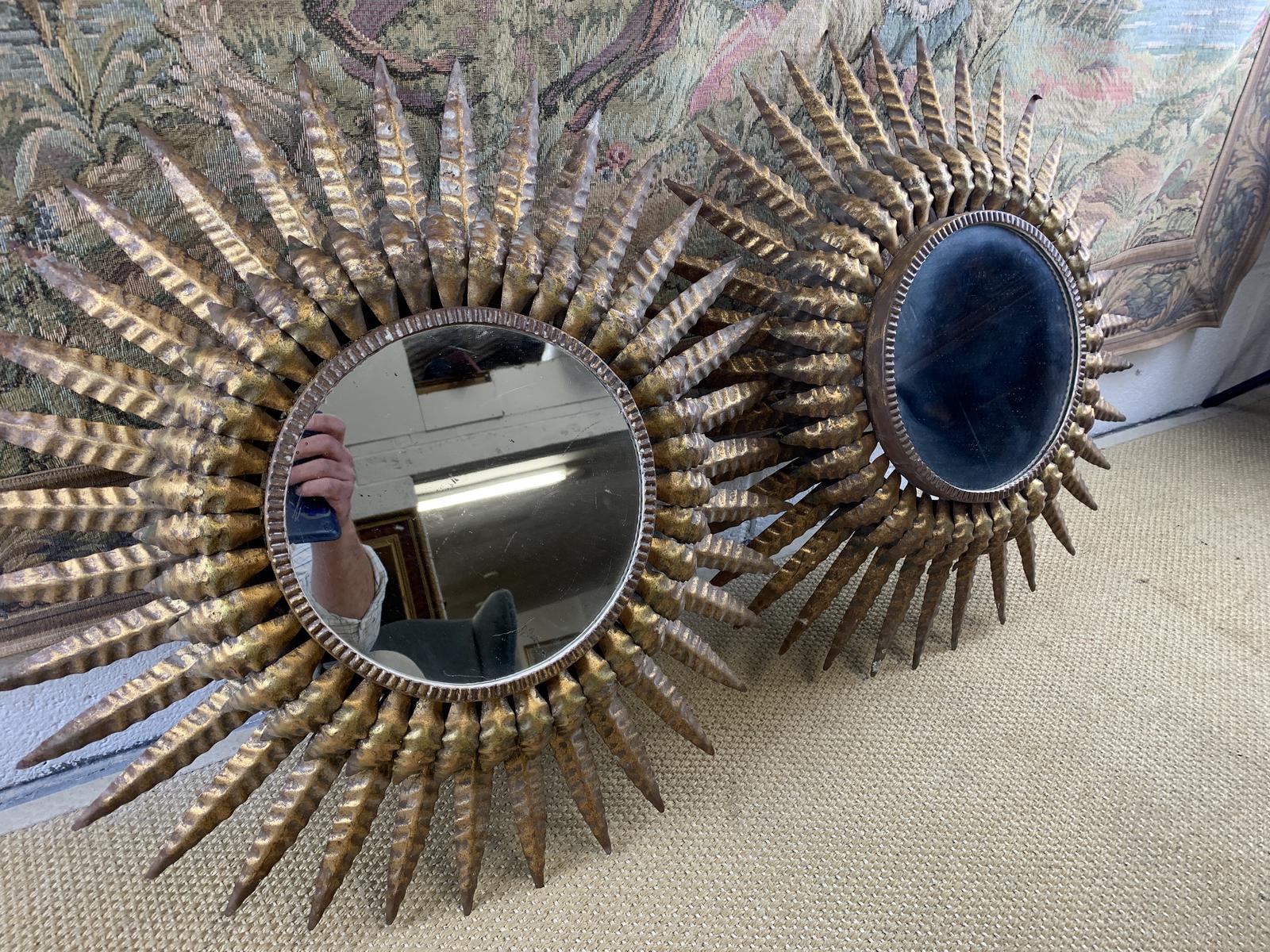 A superb pair of Spanish early 20th Century antique gilt brass wall mirrors made from gilt brass in and in good original condition.