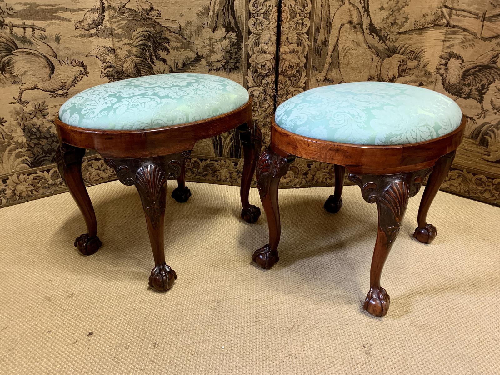 A stunning pair of Georgian (1790) Mahogany Carved Stools.