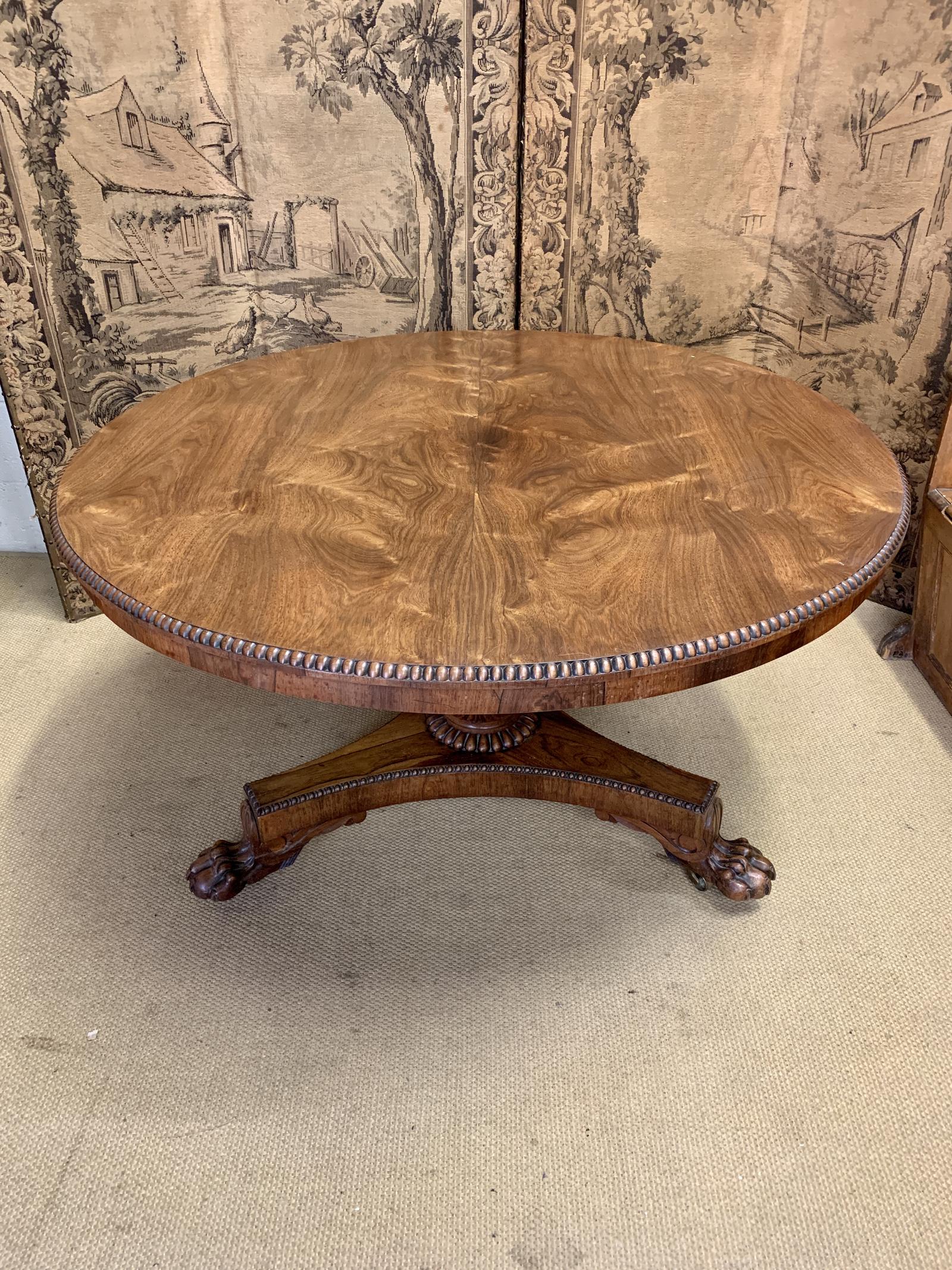 This is a superb quality English 19th Century 'Regency style' antique rosewood centre table in the manner of Gillows with carving throughout.