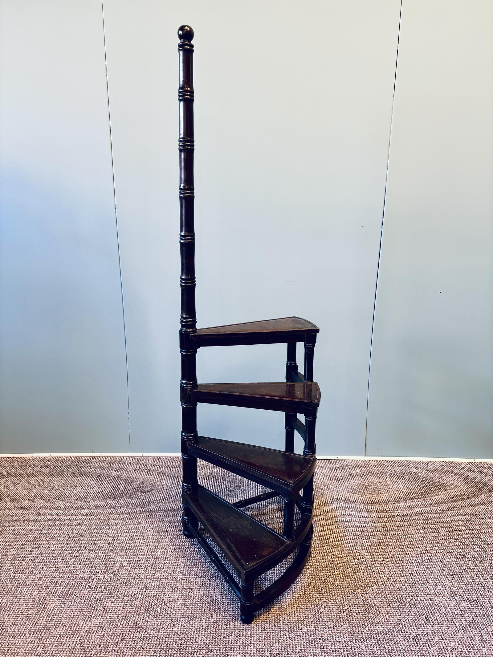 This is a superb quality set of late 19th Century (1880) antique library steps made from fine quality dark mahogany timbers and in very good condition.