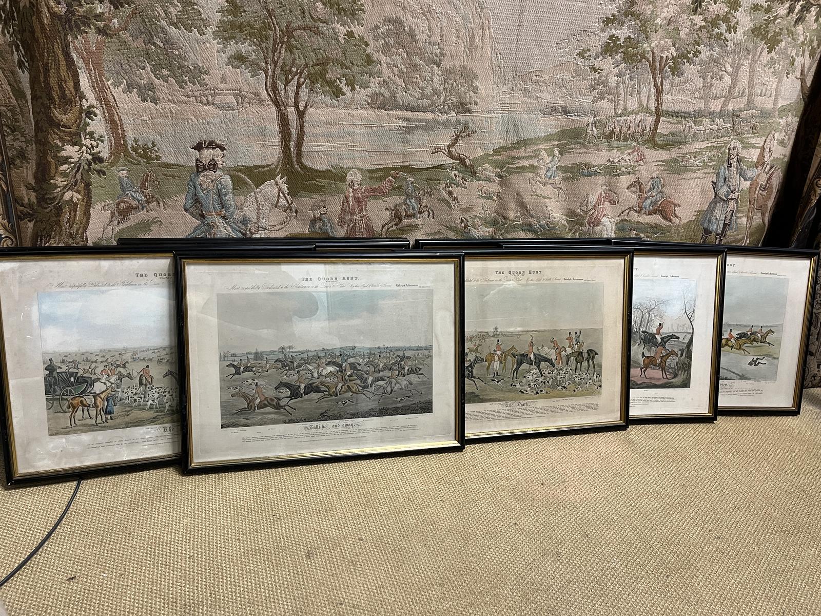 These are very good quality set of 8 prints showing The Quorn Hunt. Set in to good quality ebonised and gilt frames (some minor repairs to frames as shown in photos).