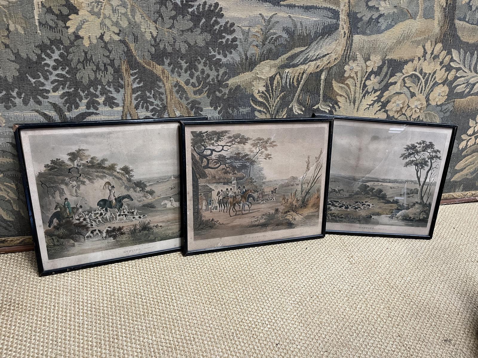 These are a good quality set of three hunting engravings colourised and dating to around 1880.