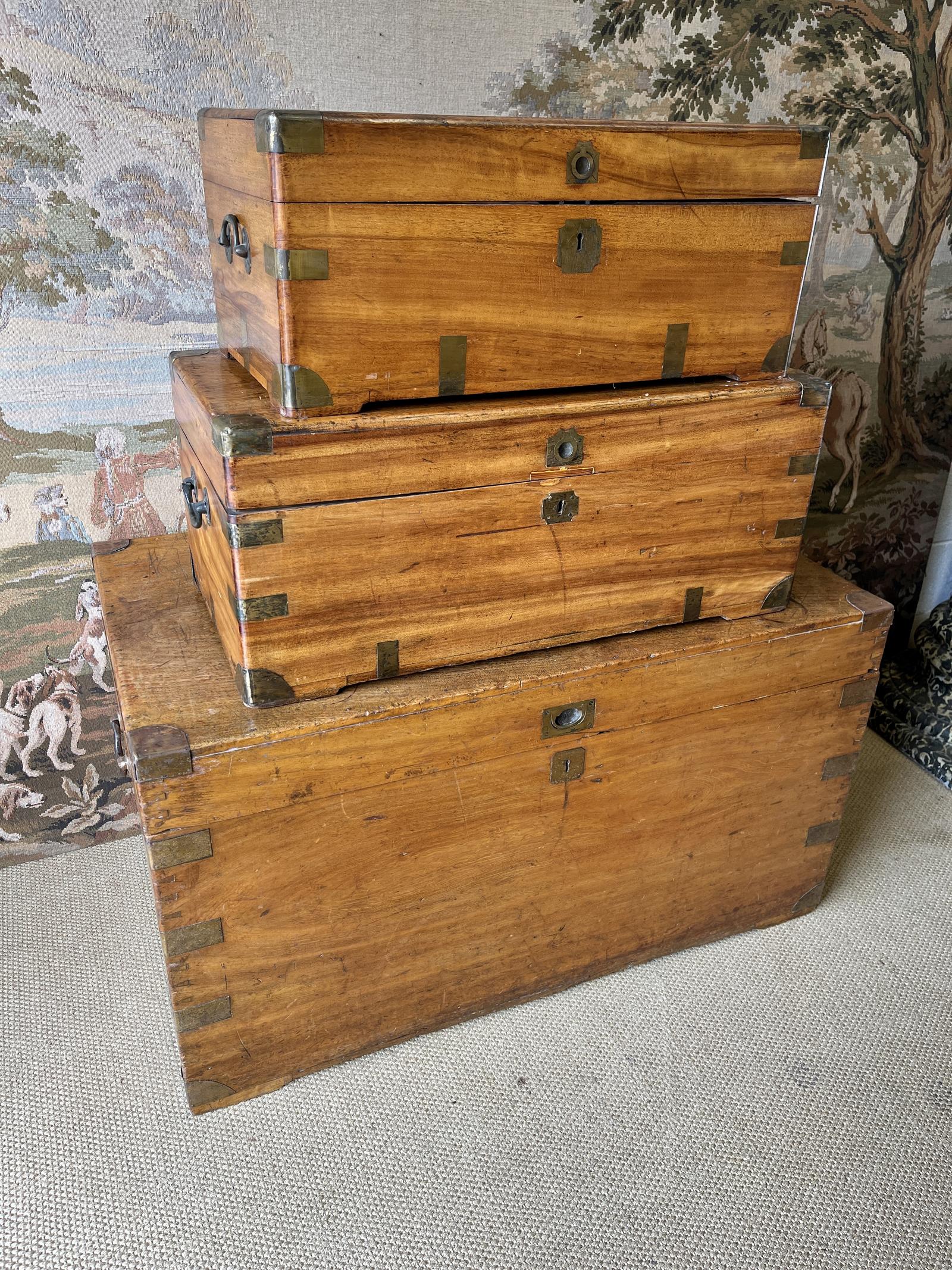 Set of Three Camphor Wood Brass Bound Campaign Trunks