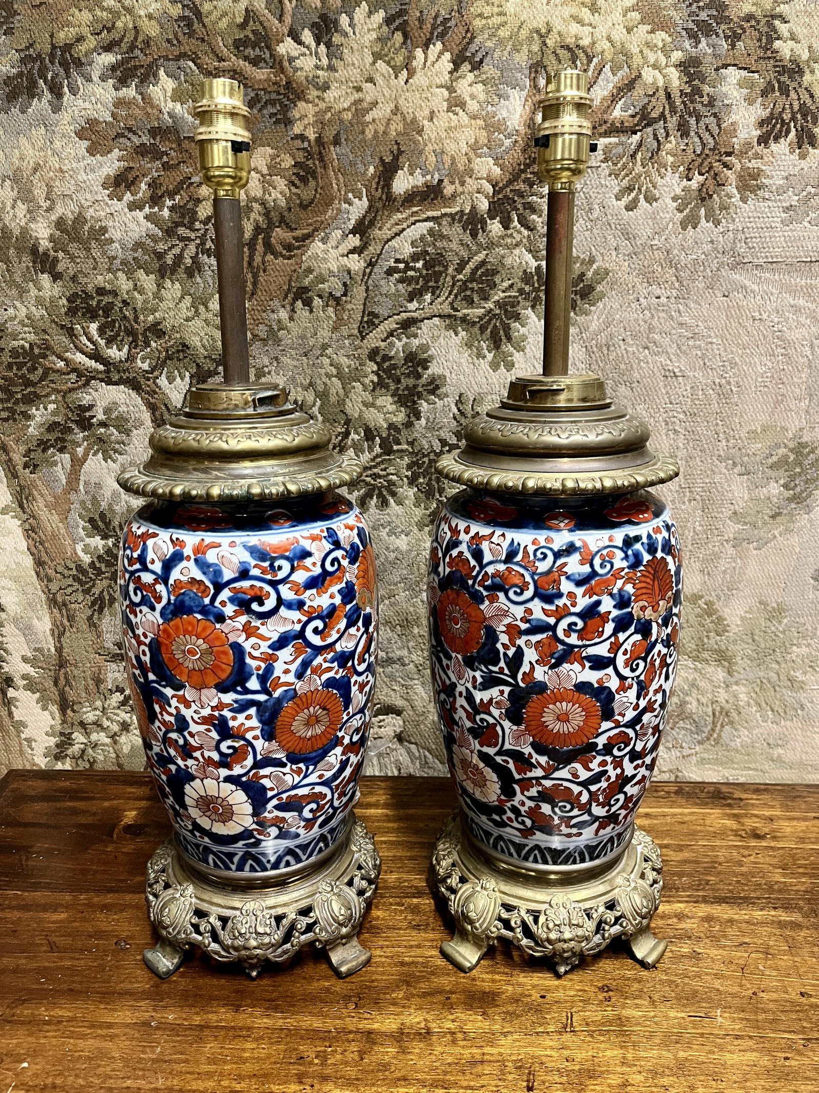 This is a superb quality pair of 19th Century Imari antique lamps with brass fitting and decoration. Modern wiring and Pat tested as required by law.