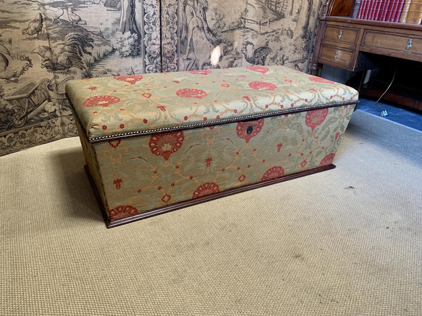 This is a superb English late 19th Century Victorian antique ottoman upholstered in a beautiful green and red fabric and an excellent size.