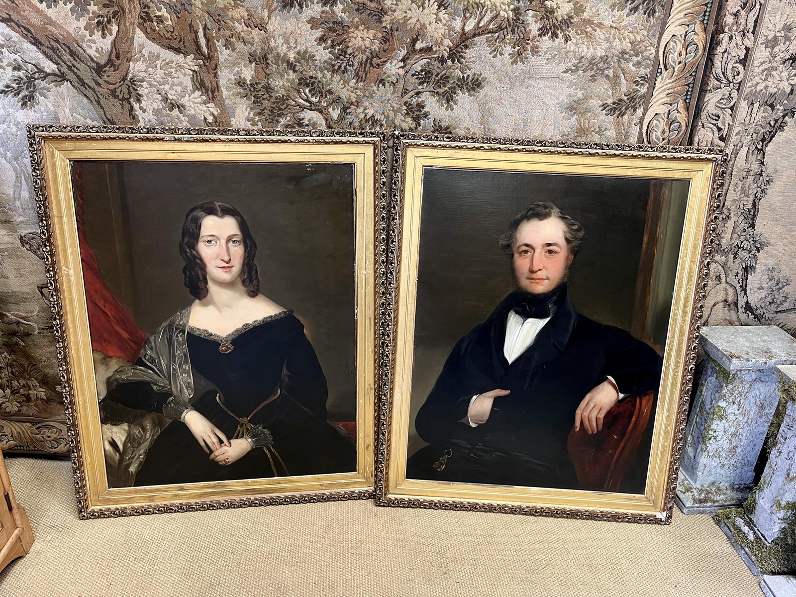 These are a superb quality pair of 19th Century antique oil on canvas portraits, showing a husband and wife, both very well painted and set in to good quality carved gilt frames.