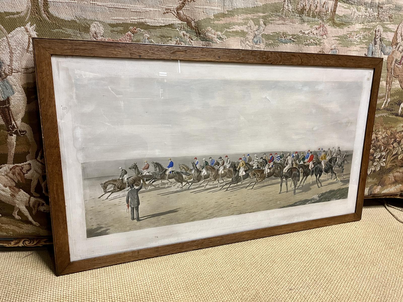 This is a stunning, very large late 19th Century (1890) antqiue racing print in good overall condition, beautifully coloured and in original oak frame.
