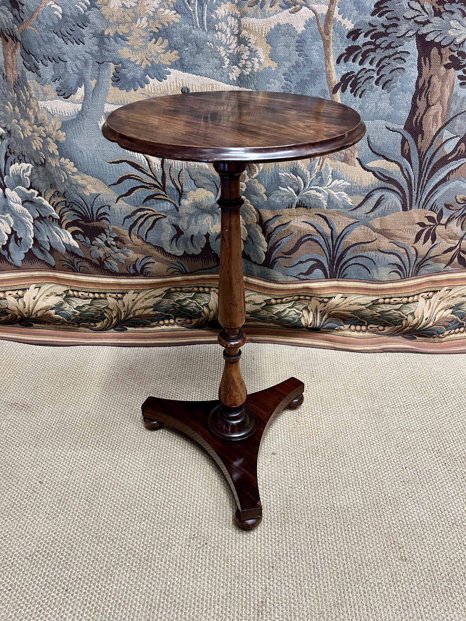 This is a superb quality mid 19th Century (1860) English antique mahogany lamp table on turned tripod base.