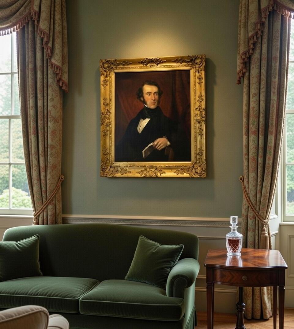 A superb quality English 19th century oil on canvas portrait of a gentleman set in to a fine gilt frame.