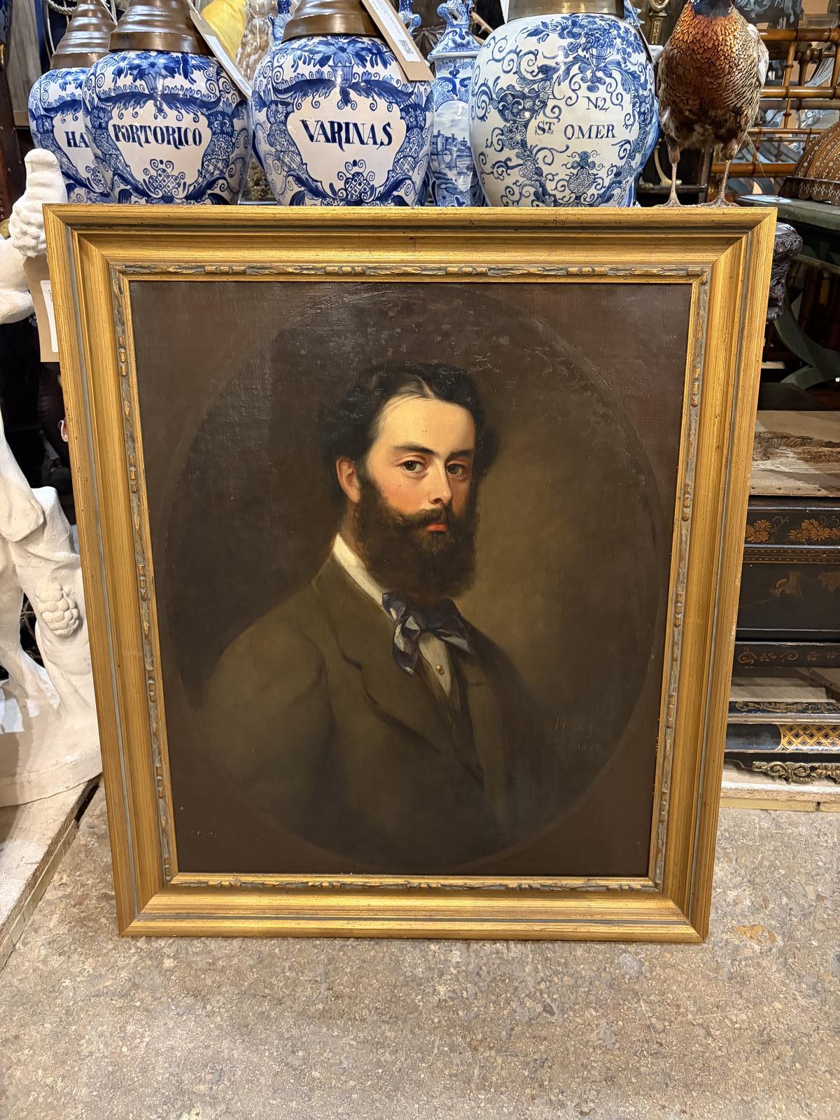 A very fine quality mid 19th Century Victorian antique oil on canvas portrait of a bearded gentleman. Very well painted and in good condition.